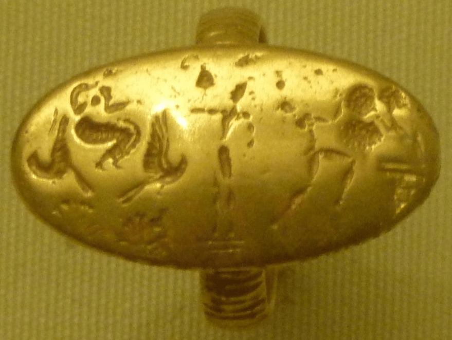 Sveti razgovor između ženskog i muškog božanstva okruženih pticama, epifanija božice i štovanja drveta, minojska kultura,