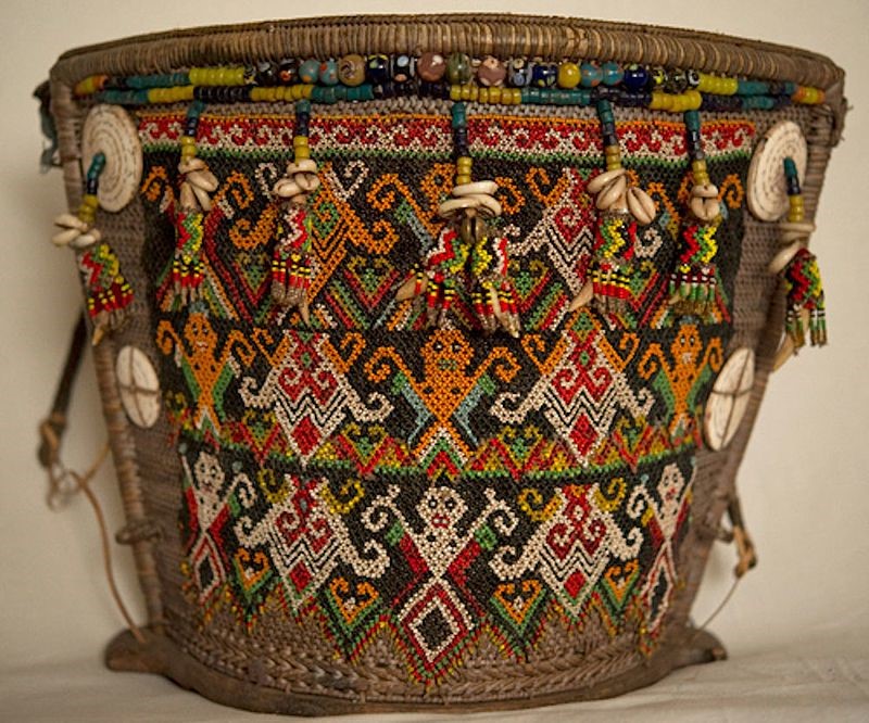 Tradicionalna Dayak nosiljka za bebe s perlama, ima i rombova: